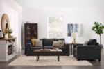 Elevate your living space with the Fava sofa. where comfort meets durability in perfect harmony. Crafted from tightly woven fabric with chenille-textured yarn. this sofa is designed to withstand the demands of your most used room while providing a cozy retreat for relaxation. The Fava sofa features wide track arms and wood-toned wedge feet. ensuring it looks stylish from top to bottom. The sturdy construction promises years of enjoyment. making it a reliable centerpiece in your home. The rich grey finish of the Fava sofa brings a subtle elegance that seamlessly blends into any décor. making it versatile enough to complement a variety of styles. As part of the Fava furniture collection. this sofa can be paired with a matching ottoman. chair. and loveseat. For a fully coordinated living room. consider the complete Fava 3 Piece Living Room Package. creating a cohesive and sophisticated look that enhances your home’s ambiance.;;;;Fava Sofa – gris;;;;Rehaussez votre espace de vie avec le sofa Fava. où le confort et la durabilité se rencontrent en parfaite harmonie. Fabriqué dans un tissu tissé serré avec un fil chenillé texturé. ce sofa est conçu pour résister aux exigences de votre pièce la plus utilisée tout en offrant un refuge confortable pour la détente. Le sofa Fava est doté de larges bars plats et de pattes en coin en bois. ce qui lui confère une allure élégante du début à la fin. La construction robuste promet des années de plaisir. ce qui en fait une pièce maîtresse fiable dans votre demeure. Le riche fini gris du sofa Fava lui confère une élégance subtile qui s’intègre parfaitement à tout décor. ce qui le rend suffisamment polyvalent pour s’harmoniser avec une grande variété de styles. Faisant partie de la collection de meubles Fava. ce sofa peut être jumelé avec le tabouret. le fauteuil et la causeuse assortis. Pour une salle de séjour entièrement coordonnée. considérez l’ensemble complet de salle de séjour de 3 mcx Fava. créant un aspect harmonieux et sophistiqué qui rehausse l’ambiance de votre foyer.