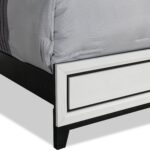 Introducing the Fog 3-piece Queen Bed. a modern piece designed to elevate your bedroom’s aesthetic. The headboard features a stunning white tile-like pattern set within a sleek black panel base. creating a bold geometric design that exudes contemporary elegance. The clean lines and sophisticated contrast of colours make it a unique addition that seamlessly fits into any bedroom décor. The footboard complements the headboard with a rectangular white panel embedded in a black panel base. continuing the two-tone look. Black tapered feet add a touch of sophistication and stability. enhancing the bed’s modern appeal. The slats and support legs are designed to offer extra strength and durability. ensuring a sturdy and reliable foundation for your mattress. This queen bed boasts a casual contemporary flair with its clean lines and defining accents. The distinct framing effectively highlights the white finish. making the Fog Queen Bed a standout piece in any bedroom room setting. Perfect for those who appreciate modern design with a touch of elegance. this queen bed is an excellent addition to a variety of décor choices. transforming your bedroom into a chic and stylish sanctuary.