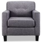 An ideal choice for small spaces. the Merlin chair brings a contemporary look to your living room. Featuring double-tuft button detailing. this piece offers a casual feel that is accented with sophistication and style. Its kiln-dried hardwood frame ensures durability and strength.;;;;Merlin Fauteuil – gris;;;;Parfait pour les petits espaces. le fauteuil Merlin apporte une touche de modernité à votre salon. Doté d’élégants boutons de capitonnage qui accentuent son style contemporain et son allure sophistiquée. ce fauteuil combine style. confort et durabilité. notamment grâce à sa structure en bois séché au four.
