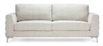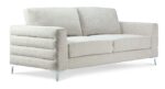 Bring a piece of contemporary elegance into your home with the Micah Sofa. Specifically crafted for smaller spaces. this small couch is the perfect solution if you want a full look in your space without taking up too much room! This sofa couch features a soft white fabric. which adds a layer of brightness to your space while preventing it from being too overpowering. Additionally. this neutral colour tone ensures that it can easily coexist with your other pieces and not clash. Made with a tailored track arm design. this cozy couch features fluted side details and sleek chrome metal legs that add an extra level of dimension. elevating your space. Constructed from hardwood and plywood. this sofa provides a sturdy foundation that will stand the test of time. The soft upholstery enhances comfort. while its compact size ensures functionality in apartments or condos. Sit back and enjoy the beauty that is the Micah—a standout among Leon’s sofas built for real-life living.