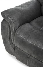 Comfort is key in this Morrow reclining sofa. French seams sharply contrast the dark grey fabric with a white running stitch to help define curves. emphasize lines and accentuate the shape of this piece. The full chaise footrests are designed to relieve pressure. while scooped bucket seats and high backrests raise the bar on coziness.;;;;Morrow II Sofa inclinable – gris;;;;La beauté et le confort sont au premier plan avec le sofa inclinable de la collection Morrow. Une élégante couture anglaise fait contraste à son riche tissu gris. alors qu’un point glissé vient définir ses courbes. mettre l’accent sur ses lignes et accentuer sa forme unique. Le repose-pieds de chaque fauteuil. entièrement rembourré. a été conçu pour soulager les tensions. alors que les sièges baquets et les hauts dossiers ajoutent au caractère de détente du sofa.