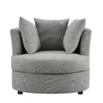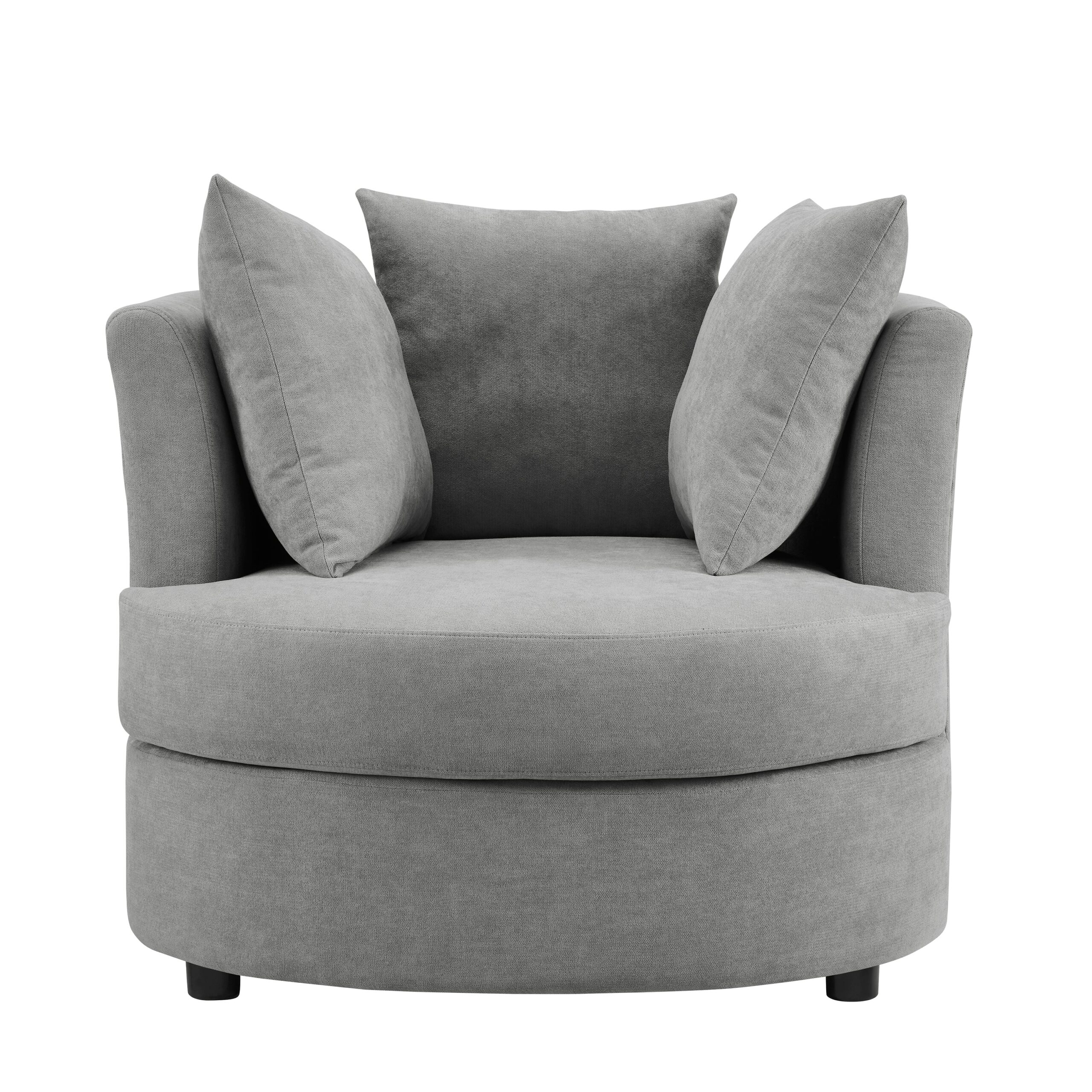 Experience all-around comfort with the Snuggle Accent Chair. thoughtfully designed to bring oversized coziness and laid-back style into any space. This generously scaled arm chair features a thick. cushioned seat and rounded back that makes every moment feel like a warm hug. Its oversized design creates extra room to relax. while the three matching accent pillows add both style and plush support. Upholstered in a classic grey fabric. the Snuggle arm chair blends seamlessly with most home décor—making it a versatile addition to bedrooms. living rooms. or reading nooks. Whether you’re curling up with a good book or lounging through a movie marathon. this arm chair delivers softness without sacrificing style. The sturdy wood frame provides long-lasting durability. so you can enjoy this cozy retreat for years to come. With its neutral colour palette and inviting silhouette. the Snuggle arm chair adds comfort and charm to any room. It’s the ultimate cozy companion—designed for anyone who takes their lounging seriously.